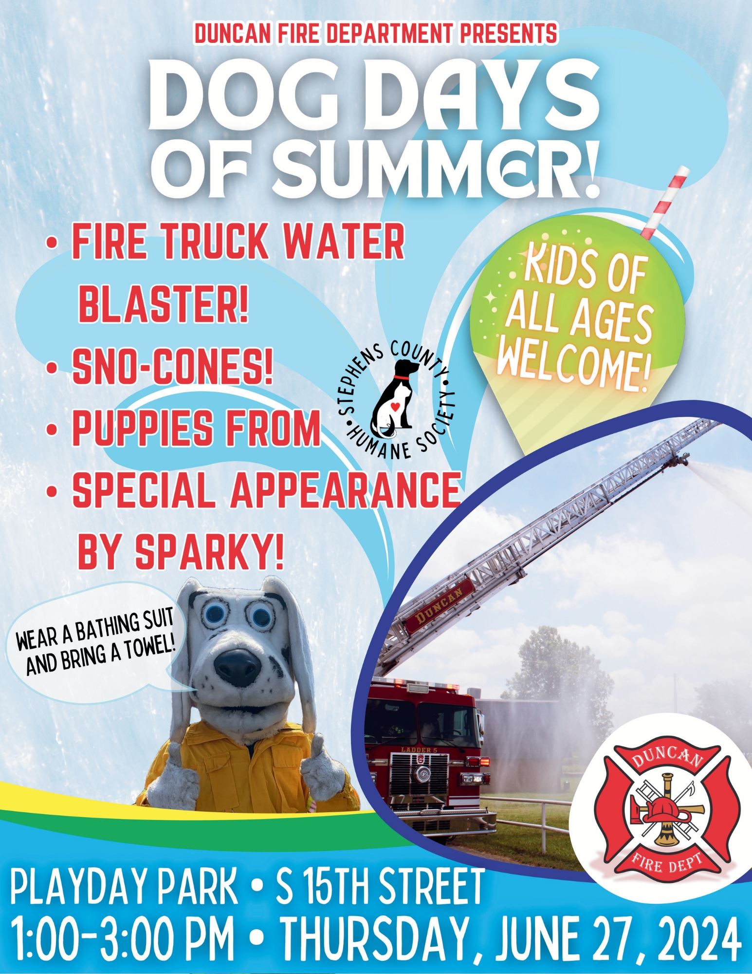 Duncan Fire Department is introducing a fun way to combat the summer heat and stay cool as they host the “Dog Days of Summer” at PlayDay Park.